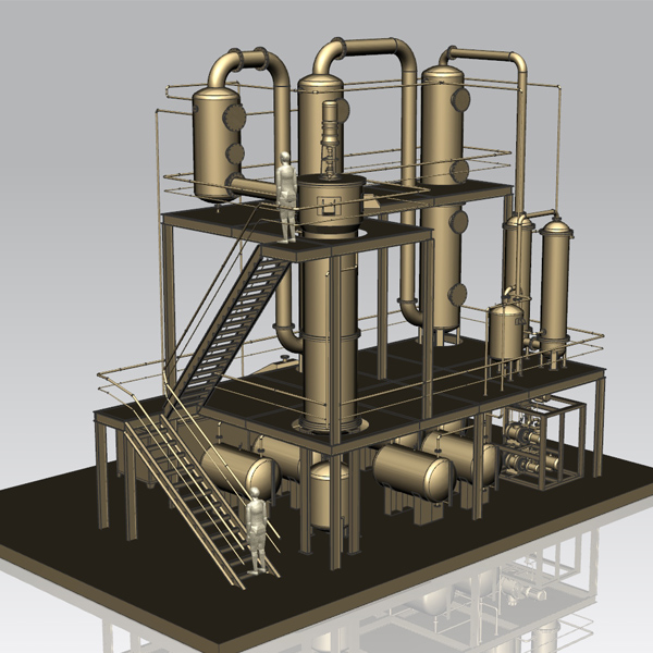 2、蒸餾系統(tǒng):通過燒燃料油、燃氣等燃料將釜內(nèi)廢機油在真空狀態(tài)加熱至工作溫度,同時釜內(nèi)配有攪拌系統(tǒng)和保溫系統(tǒng)。
